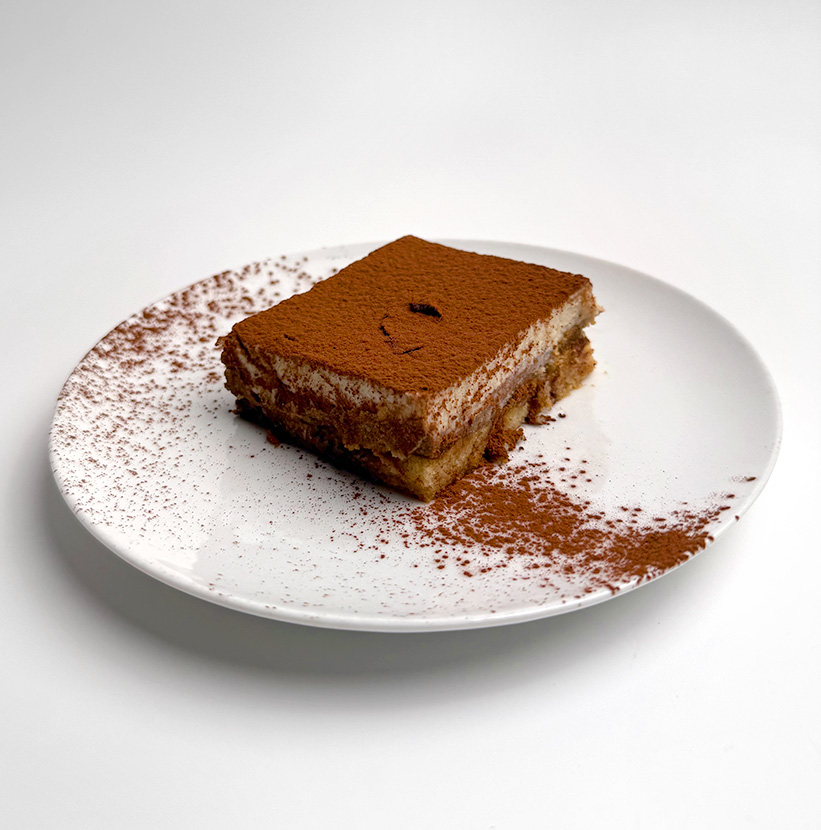Tres capas de bizcocho de cacao holandés, con ganache de chocolate, crujiente de almendras y frutos rojos.