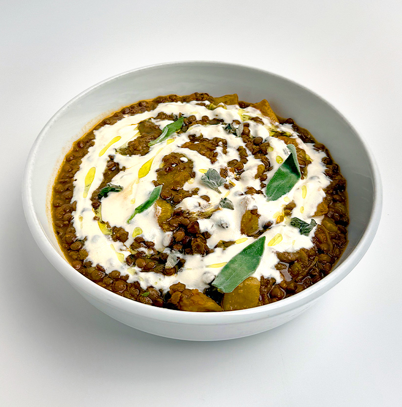 Sopa casera de lentejas terminada con queso crema de anacardo fermentado. Sopa casera de lentejas terminada con queso crema de anacardo fermentado.